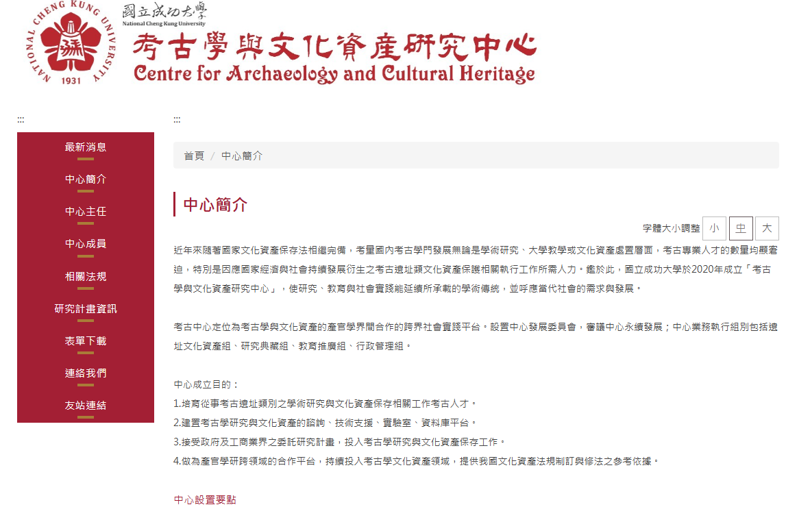The Center for Archaeology and Cultural Heritage at NCKU was established in 2020 to address the growing national demand for the protection of archaeological sites and cultural heritage in the context of ongoing economic and social development. Positioned as a cross-disciplinary platform for collaboration among academia, government, and industry, the Center integrates research, education, and social practice to sustain and advance Taiwan’s academic tradition in archaeology and cultural heritage. Its work encompasses talent cultivation, research and collections, educational outreach, and administrative management. Through technical support, laboratories, and database platforms, the Center promotes academic research and cultural heritage preservation. It also undertakes government and industry-commissioned projects, strengthening legal reforms and policy development in the field of cultural heritage.- NCKU Center for Humanities and Social Sciences - Viewing Tainan City