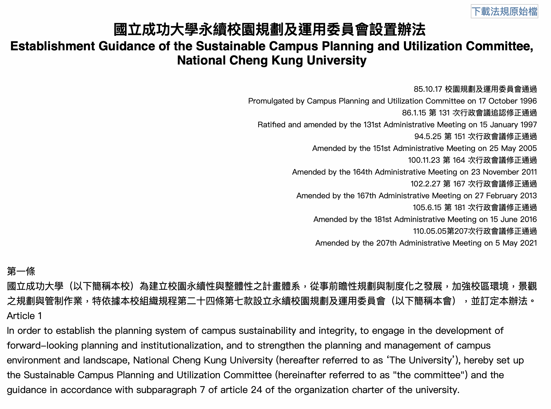 - Establishment Guidance of the Sustainable Campus Planning and Utilization Committee, NCKU