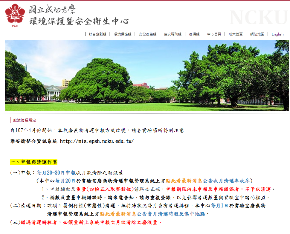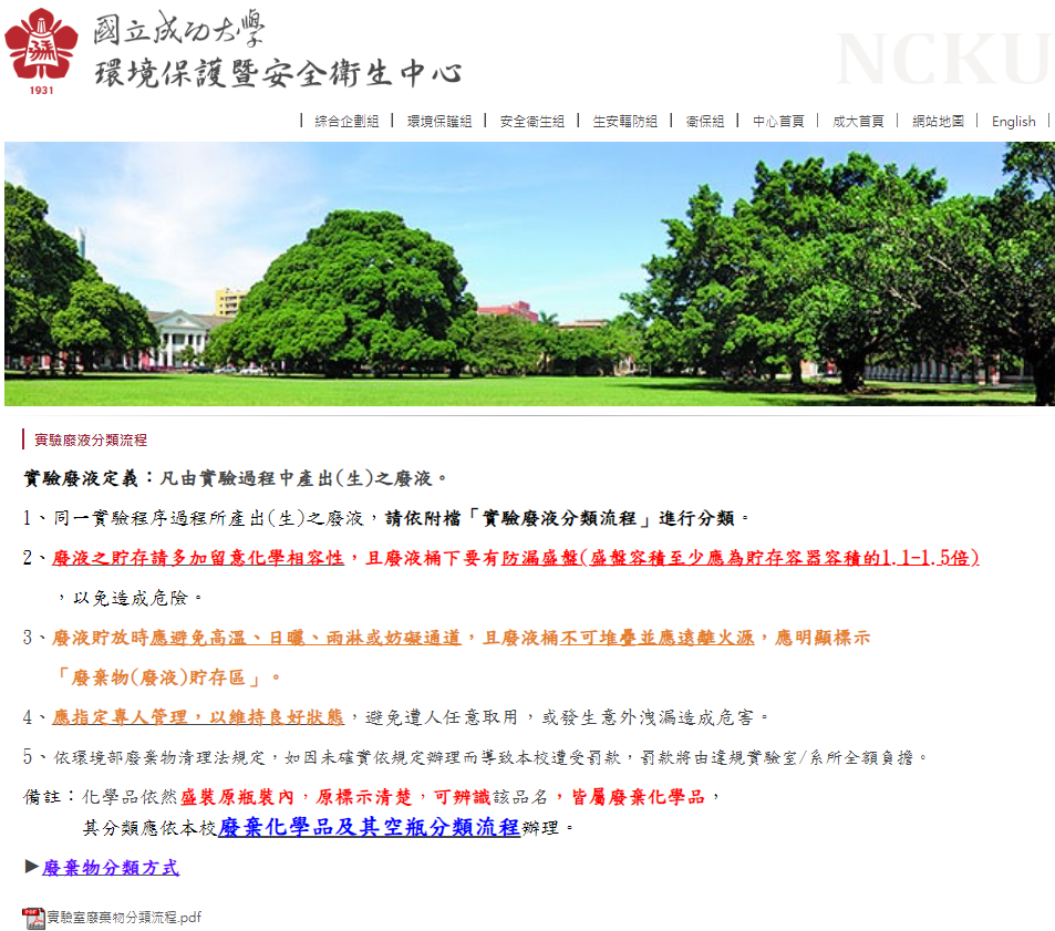 - Waste liquid classification steps of laboratory, published by Center for Occupational Safety and Health and Environmental Protection
