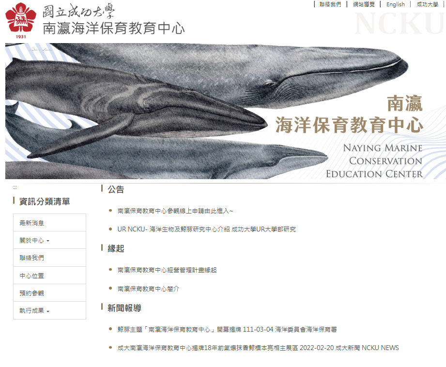 - NCKU Center for Marine Biology and Cetacean Research:Recruiting Volunteers to Raise Awareness for Marine Conservation
