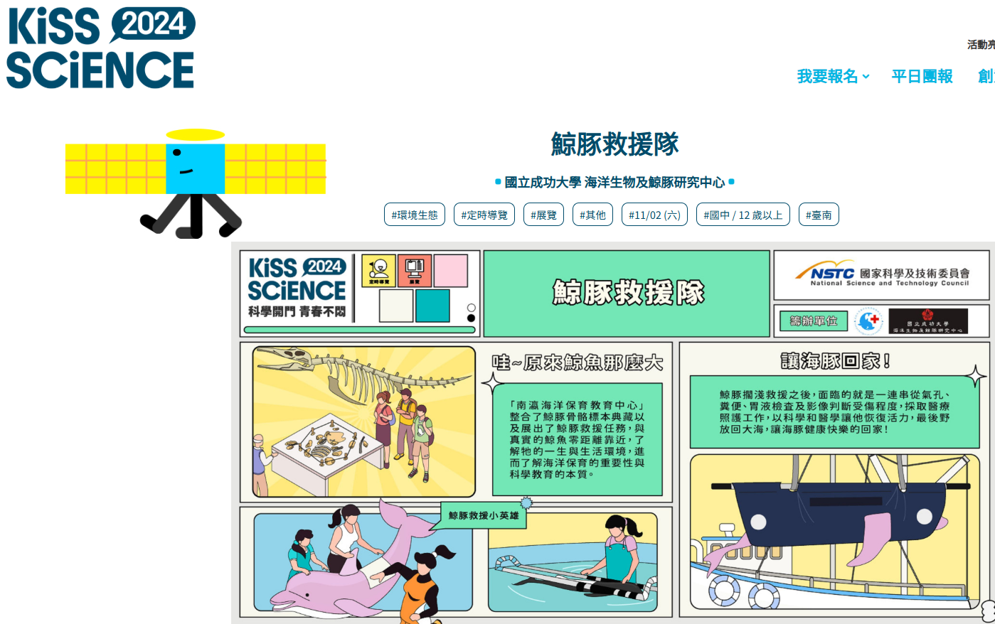 1. The NCKU Dolphin and Whale Rescue Team is the most important marine mammal rescue team in southern Taiwan and symbolizes the university's commitment to biodiversity conservation. It not only raises awareness about the ocean and the protection of whales and dolphins but also offers guided tours that include simulated rescue activities, allowing visitors to experience the mission of rescue and conservation firsthand.