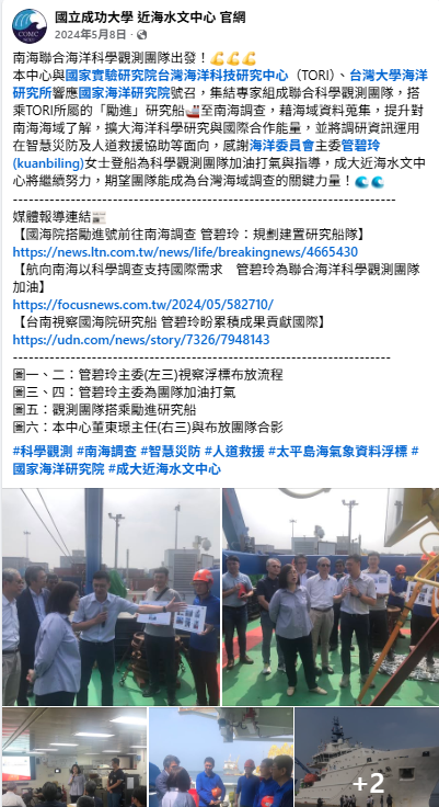 - Coastal Ocean Monitoring Center of NCKU Sets Sail for the South China Sea, Joining Observation Team to Strengthen International Collaboration