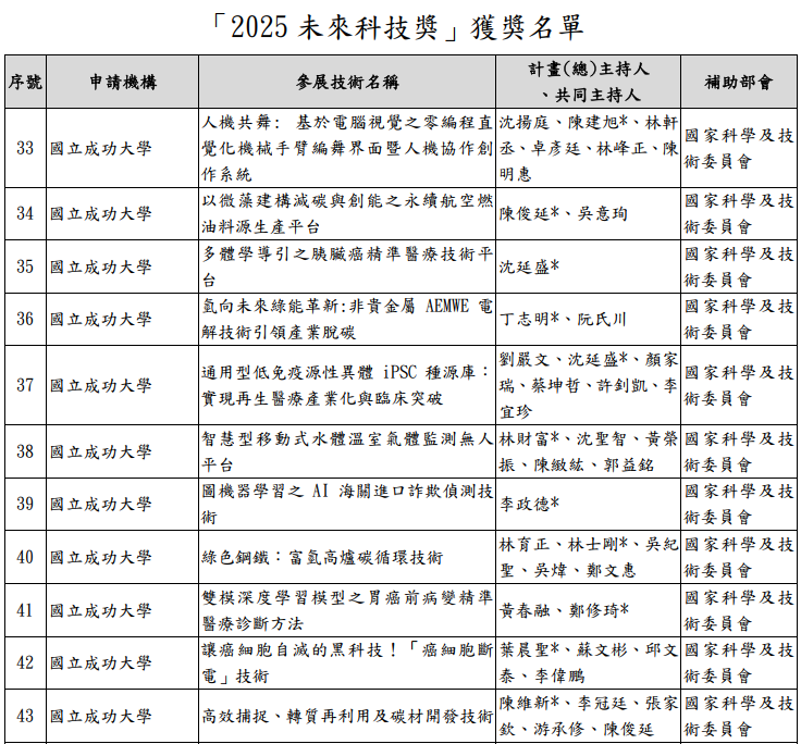 - Green Transformation in industry: NCKU Wins 11 "Future Tech Awards": Pioneering Innovations in Green Hydrogen, Carbon Sequestration, and Sustainable Aviation Fuel