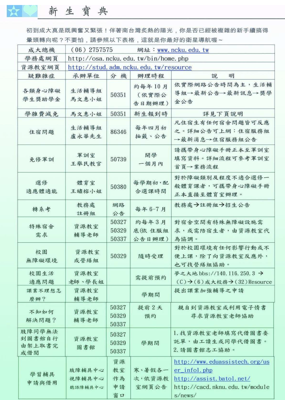 All service information, application procedures, and available support are fully transparent, demonstrating NCKU’s strong commitment to supporting and ensuring the equal rights of people with disabilities.