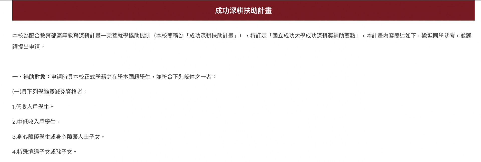 In addition, the “NCKU Deep Cultivation Assistance Program” and the “Special Education Work Plan” offer various types of support and coordinated efforts among university offices to help students with special needs adapt smoothly to campus life.