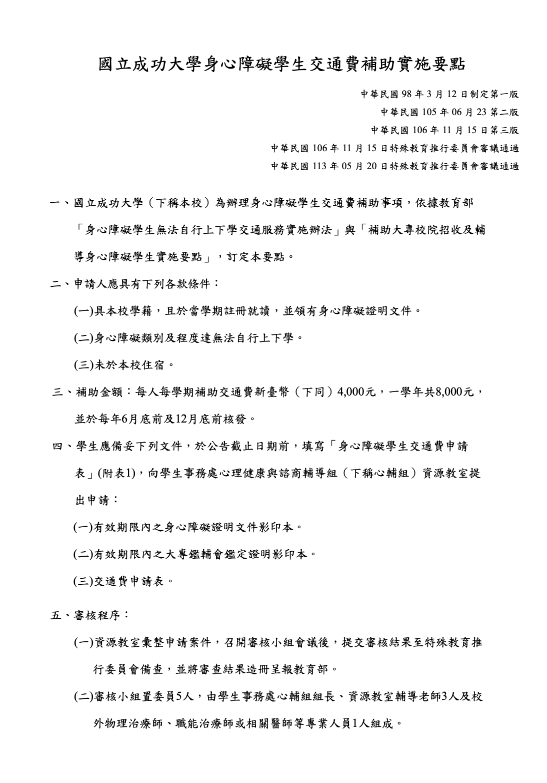 - NCKU Transportation Subsidy Guidelines for Students with Disabilities