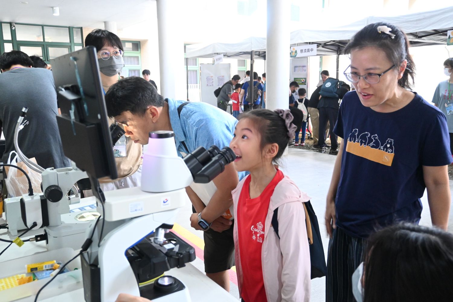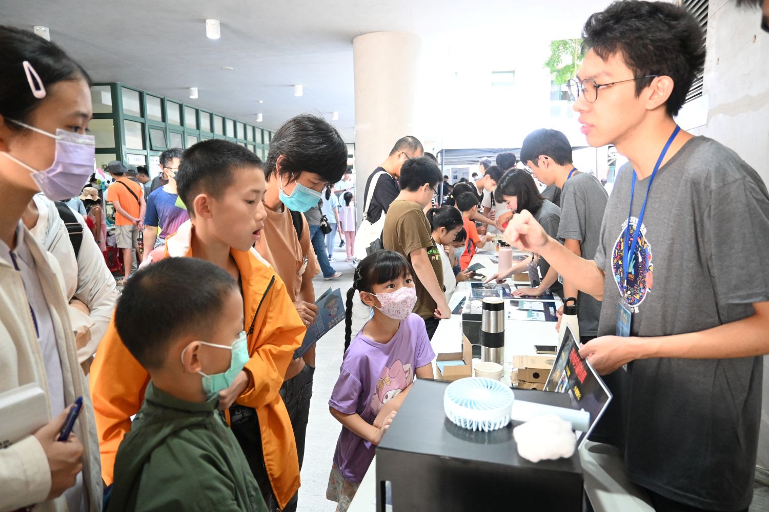 The 9th edition of the NCKU Science Boulevard Science Expo (第九屆成大理學大道科學博覽會) was co-planned by the Center for Science Education (科學教育中心) and the five departments of the College of Science—Physics, Mathematics, Chemistry, Earth Sciences, and Photonics. Core facilities of NCKU, including the Core Facility Center (核心設施中心) and the Biomedical Optical Imaging Core Facility (生醫光學影像核心平台), also participated. At the opening ceremony, attending guests were presented with the event mascot “Science Duck (科學鴨)”, intended to attract more visitors to experience the fun of science. Many children eagerly moved between the activity stations, ready to embark on a science adventure blending knowledge and exploration.