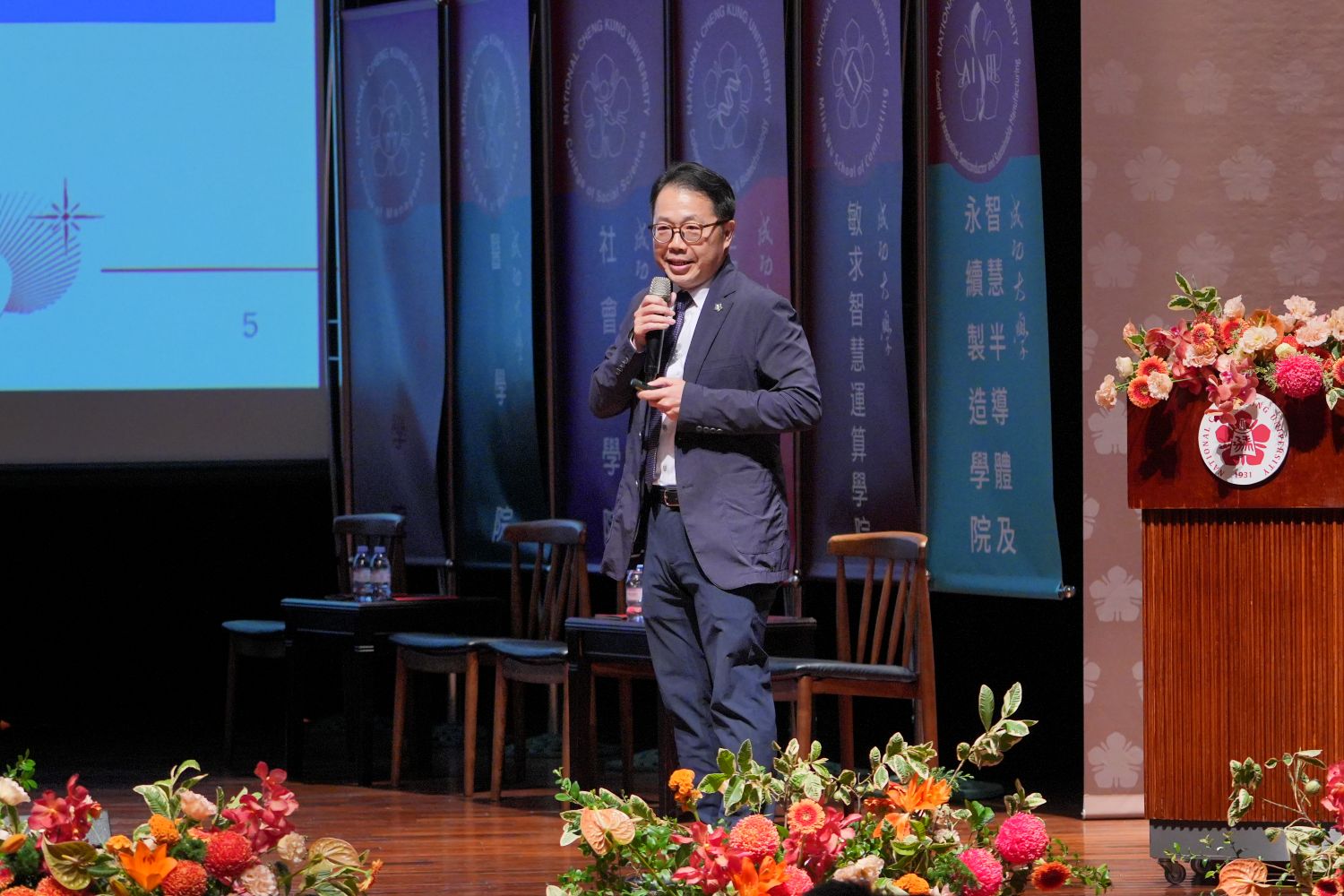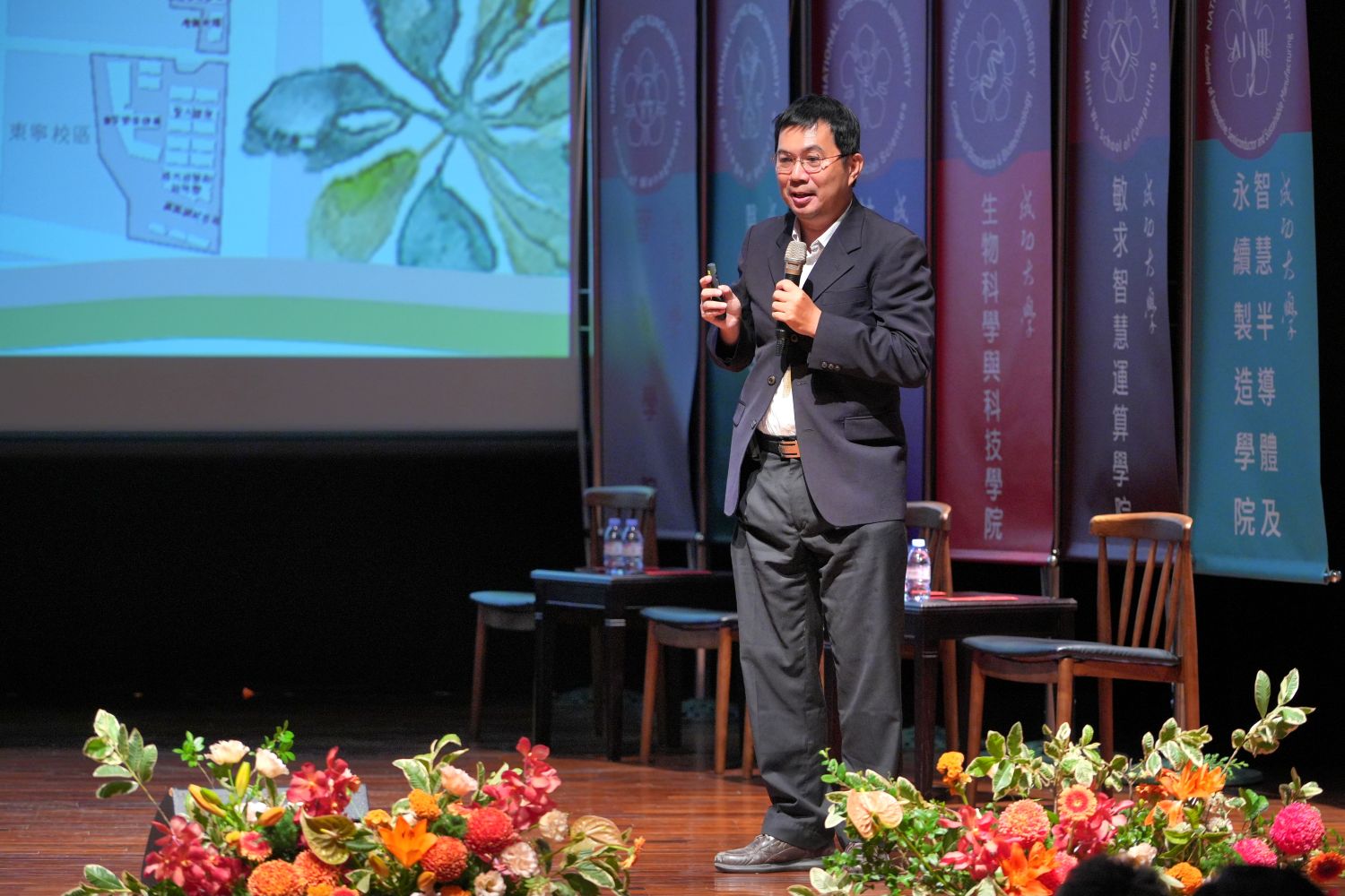 Dean of General Affairs Chien-Hung Wu introduced the seasonal landscapes of the NCKU campus.