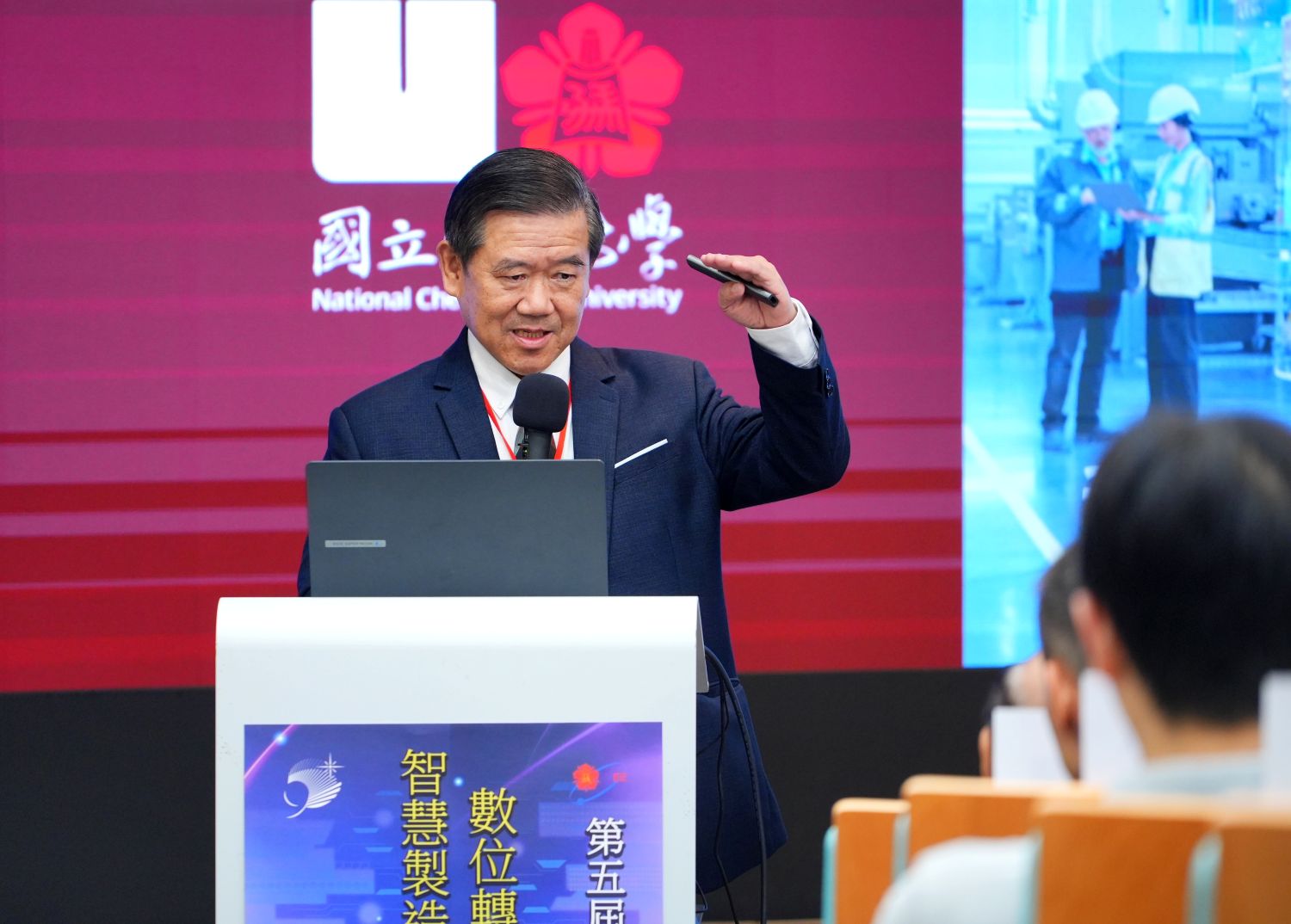 NCKU President Meng-Ru Shen (沈孟儒) delivered the opening remarks, emphasizing that a university is a place of hope, and that after-sales service ensures the campus continues to serve as a vital platform for knowledge exchange. He noted that the successful and enriching Electronics Forum has now entered its fifth year, alongside other campus forums such as the Materials Forum (成材論壇) and Mechanical Forum (成機論壇), all contributing to knowledge sharing. Highlighting the semiconductor industry’s extensive ecosystem, he noted that NCKU alumni play a key role and expressed the hope that next year’s anniversary could expand connections among similar forums to foster broader engagement.