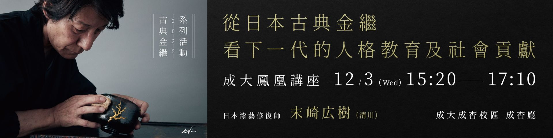 “Kintsugi: Turning Cracks into Stories, Gaps into Gateways.” Traditional Japanese craftsmanship comes to National Cheng Kung University (NCKU)! The “Beauty in Imperfection: Japanese Classical Kintsugi Restoration Exhibition” is now on display at the NCKU Historical Artifacts Museum through December 21, 2025. Globally renowned Japanese lacquer restoration master Hiroki Suenaga (Kiyokawa) will visit NCKU on December 3, offering an in-person demonstration and guided exhibition tour, followed by a lecture at the NCKU Phoenix Lecture Series. Visitors will have the opportunity to gain deeper insight into time-honored techniques dating back to Japan’s Edo period, appreciating the aesthetics and values of embracing imperfection.